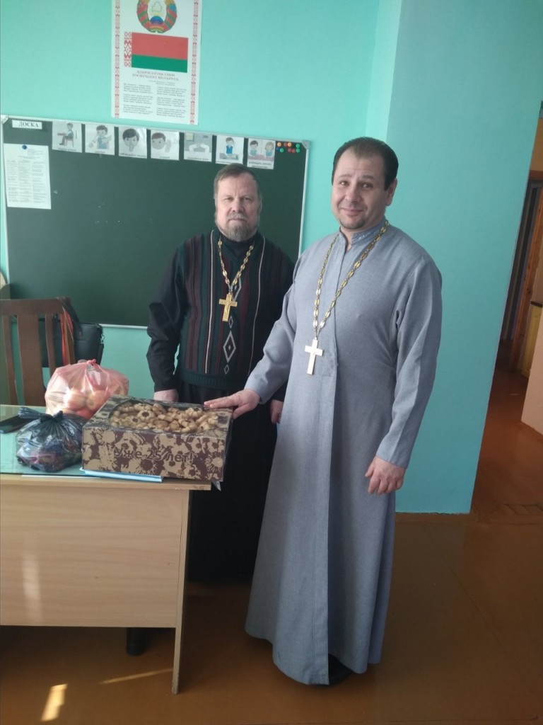 Благочинный Буда-Кошелевского округа протоиерей Сергий Пешко не оставил без внимания детишек из коррекционно развивающего центра для детей инвалидов. Глядя на ребят, а их в центре 16 учащихся, батюшка поблагодарил педагогов за их труды. «Помогая тем, кто в нас нуждается, мы помогаем Господу, о чем сам Иисус Христос говорил своим ученикам. Поэтому приходя с утра на работу, мы каждый день встречаемся с Богом» — заключил священник. Интересная встреча произошла в Территориальном центре дневного пребывания инвалидов г. Буда-Кошелево. С территориальным центром сложились прекрасные отношения, священнослужители регулярно посещают и оказывают посильную помощь центру, участвуют в различных мероприятиях. Всех пребывающих на дневном отделении 26 человек. Светлане Лукашенко, инвалиду детства, исполнилось 35 лет. В присутствии персонала центра и присутствующих в отделении пациентов о. Сергий поздравил с юбилеем Светлану и преподнес в подарок нательный крестик, икону и духовную литературу. Протоиерей Сергий и протоиерей Игорь посетили бывшую старшую сестру сестричества при Приходе храма святителя Николая Чудотворца г. Буда- Кошелево. Несмотря на возраст, а исполнилось 80 лет Екатерине Максимовне, старается посещать храм и свободную минуту проводить в молитве, чтением книг духовного содержания.